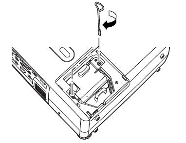 Line up the lamp cover and slide it back onto the projector. Tighten the screw on the lamp cover. You’re now ready to reset the lamp operating timer.